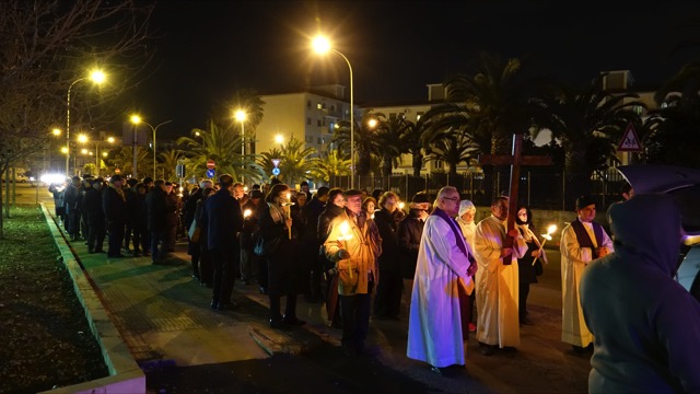 La processione dalla parrocchia della Sacra Famiglia ha percorso le vie del quartiere per arrivare nella parrocchia Maria Madre della Chiesa (Bosco Minniti).Le meditazioni sono state dedicate al tema del lavoro.