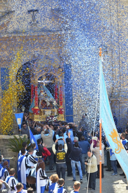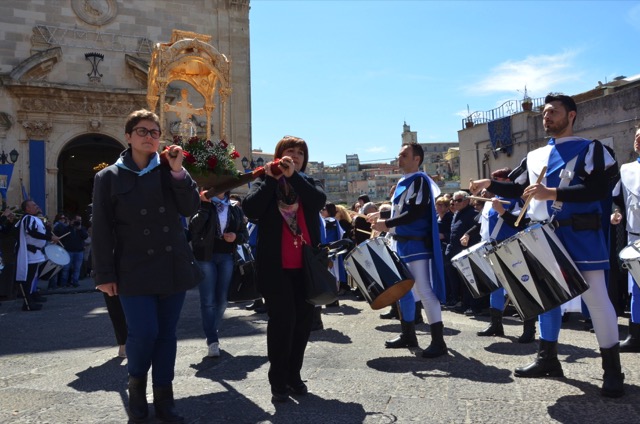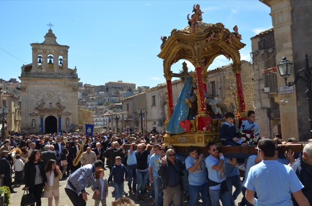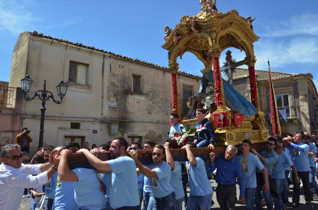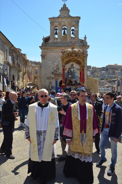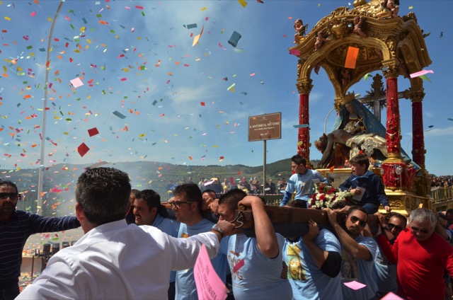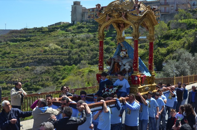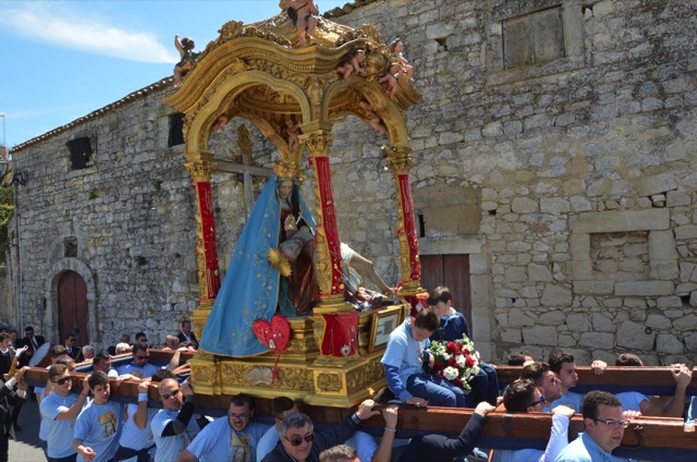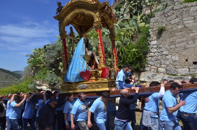 Monterosso Almo, 13 aprile 2015 – A Monterosso Almo l'Addolorata è Patrona e la Domenica in Albis esce dalla chiesa, poco dopo le undici, per benedire le campagne e per raggiungere il luogo dove sorgeva il paese prima del terremoto del 1693, cosiddetto Sant'Antonio u viecchiu.