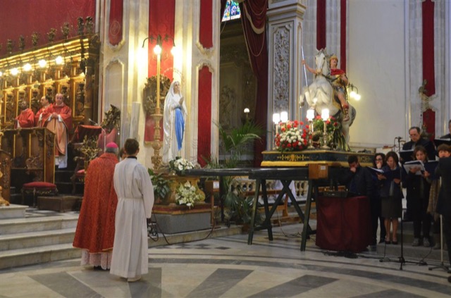 Ragusa, 24 aprile 2015 – «La benedizione di San Giorgio martire ricada, ancora una volta, su tutta Ragusa. Perché il santo possa fungere, sempre, da supporto e da guida, così come è stato nei 372 anni in cui ha ricoperto la figura di glorioso patrono della città».