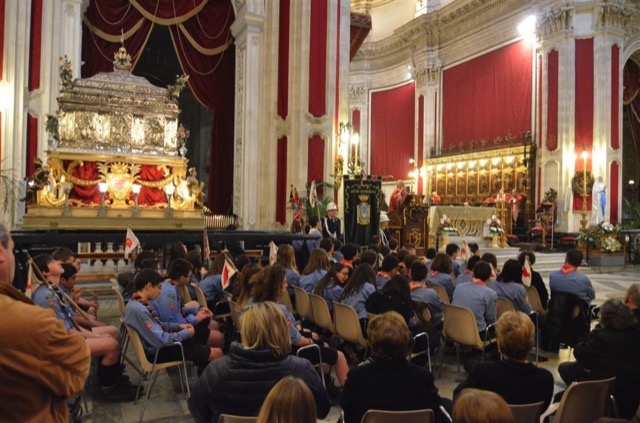 Mons. Urso si è rivolto soprattutto ai giovani scouts della città che, partendo dalle loro sedi, hanno raggiunto il Duomo in pellegrinaggio, per rendere così omaggio al loro santo patrono.