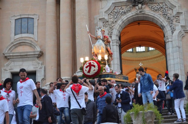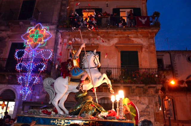 Mons. Urso, durante la funzione tenutasi alla presenza delle autorità civili e militari e dei rappresentanti del comitato della festa di San Giorgio di Modica, che ha stretto un gemellaggio con i “colleghi” ragusani, ci ha tenuto a ricordare le peculiarità del santo cavaliere e di come il suo martirio sia servito da esempio per quanti ritenevano che il sistema del tempo, all’epoca un impero romano sempre più decadente e corrotto, non potesse essere scardinato. Un parallelismo da effettuare, in qualche modo, e con le dovute cautele, con i nostri tempi. Subito dopo, l’uscita dal Duomo del simulacro di San Giorgio e dell’Arca Santa è stata salutata da una vera e propria ovazione da parte della gente assiepata nella piazza sottostante.