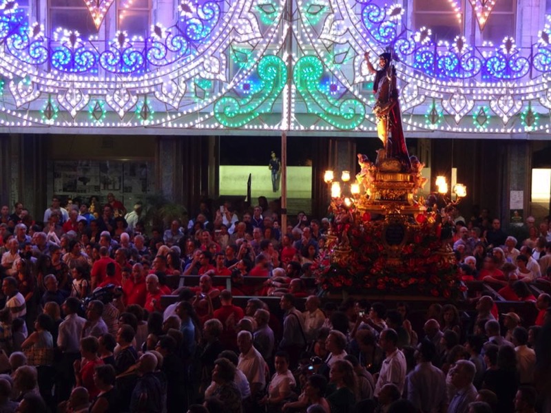 Con queste parole, il festoso e partecipato rientro del Simulacro del Patrono in Cattedrale, e i fuochi pirotecnici di mezzanotte, si è conclusa una giornata vissuta prima di tutto nella fede e nella devozione: si stimano infatti oltre diecimila presenze in Chiesa durante le otto celebrazioni eucaristiche, e a conferma di questo il fatto che il Parroco e numerosi sacerdoti in mattinata hanno confessato per più di quattro ore consecutive e, tenendo conto della quantità di particole utilizzate, circa cinquemila fedeli hanno fatto la Comunione. Migliaia i ceri accesi durante la lunga processione, gestita nell'ordine dai volontari del "piano sicurezza" e che, differentemente dallo scorso anno grazie alla rimozione della parte della fiera che insisteva sul Ponte di Via Roma e Viale Tenente Lena, non ha conosciuto criticità rilevanti. Rimane comunque necessario che i fedeli ascoltino in maniera tassativa le indicazioni dei volontari onde evitare piccoli stacchi.