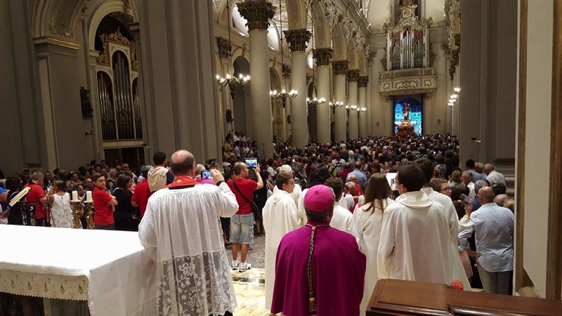 Con questo messaggio il Vescovo di Ragusa Mons. Paolo Urso ha salutato l'immensa folla di fedeli che ha gremito Piazza San Giovanni ieri sera, 29 Agosto, al termine della lunga processione solenne che ha attraversato il centro storico con migliaia di ceri accesi.