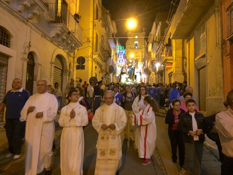 L’itinerario: via Ecce Homo, via Mario Leggio, corso Vittorio Veneto, via Garibaldi, corso Italia, via Spatafora, via Generale Cadorna, via F.lli Belleo, via Solferino, piazza Solferino. Qui si terrà l’intrattenimento pirotecnico a cura della ditta Elia Fireworks di Giovanni Elia di Giarratana. Il corteo, poi, proseguirà per via Elia, via Minardi, piazza Ecce Homo sino a fare rientro in chiesa.