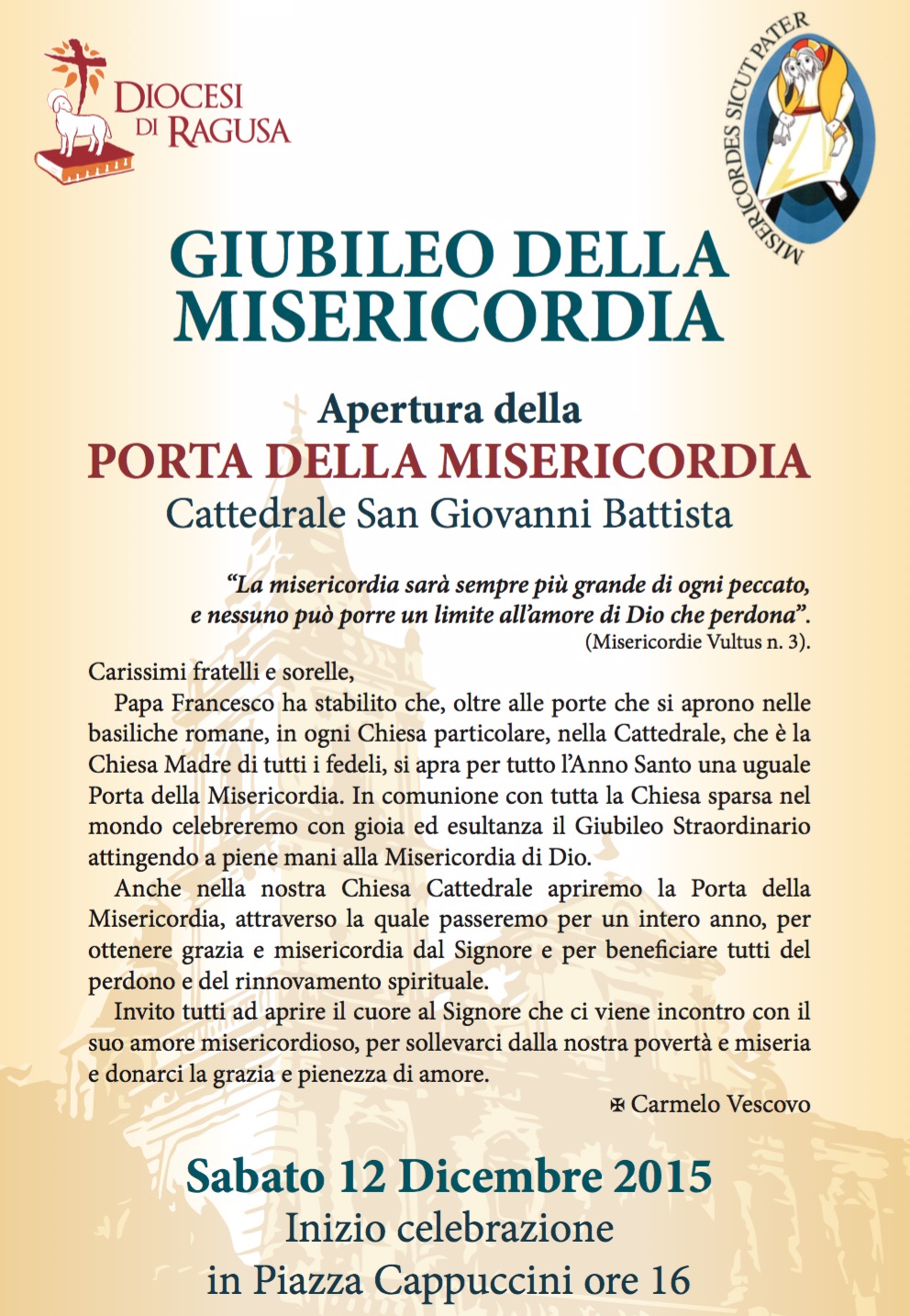 Sabato 12 dicembre dalle ore 16,00 in Piazza Cappuccini inizia la celebrazione per l’apertura della Porta della Misericordia, nella Cattedrale di San Giovanni Battista di Ragusa.