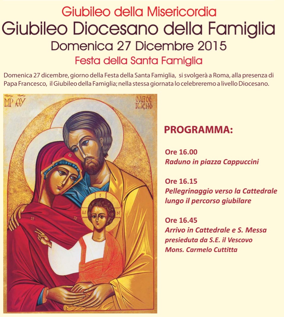 #Ragusa, 23 dicembre 2015 – Domenica 27 dicembre, in occasione della Festa della Santa Famiglia, Papa Francesco celebrerà a Roma il Giubileo della Famiglia.