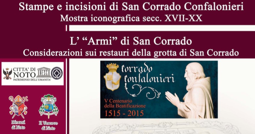 #Noto, 20 febbraio 2016 – Il 25 Febbraio 2016 presso la Chiesa di San Domenico alle ore 9:00 all' inaugurazione della Mostra "Stampe e incisioni di San Corrado Confalonieri Mostra iconografica secc. XVII-XX" seguita dall'attività didattica: "L' "Armi" di San Corrado Considerazioni sui restauri della grotta di San Corrado" in occasione dei festeggiamenti per il V Centenario della Beatificazione (1515-2015) organizzato dalla Diocesi di Noto, Comune di Noto, Soprintendenza di Siracusa, I.I.S. "Matteo Raeli" Basilica della Cattedrale San Nicolò, Cooperativa Etica Oqdany, Accademia delle belle Arti Val Di Noto.