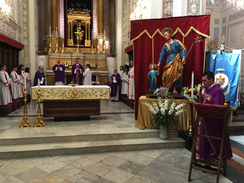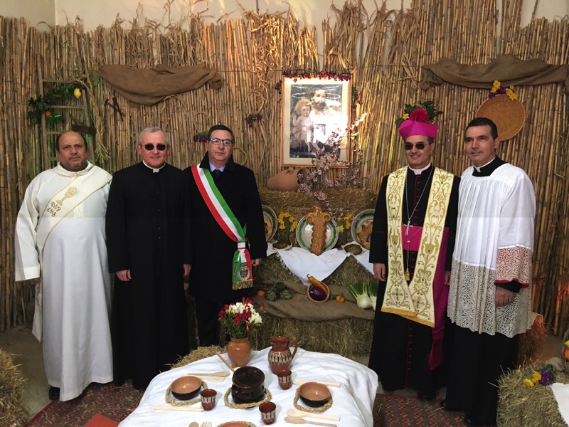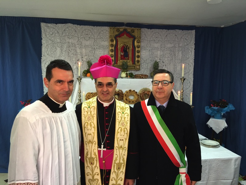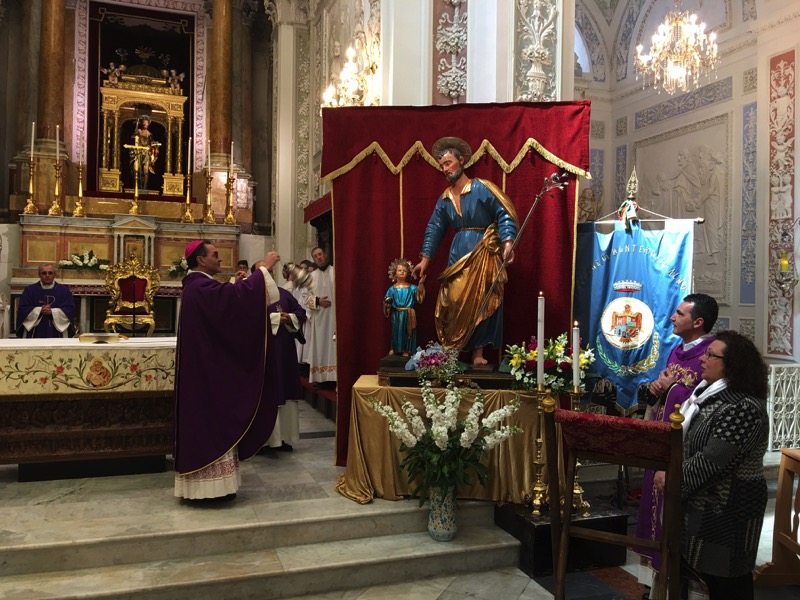 Il vescovo, considerata la concomitanza della festa esterna di San Giuseppe, è stato accolto in prossimità di uno dei sei altari dedicati al Patriarca preparati dai fedeli.