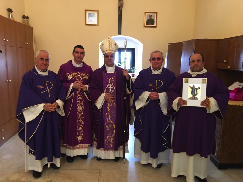 Il vescovo è stato accolto dall’arciprete, don Marco Diara, con il vicario parrocchiale, don Mariusz Starczewski, e il diacono Giovanni Agostini e da padre Andrea Maria Oddo, provinciale dei Carmelitani.
