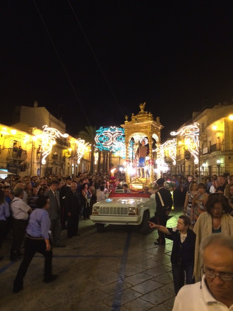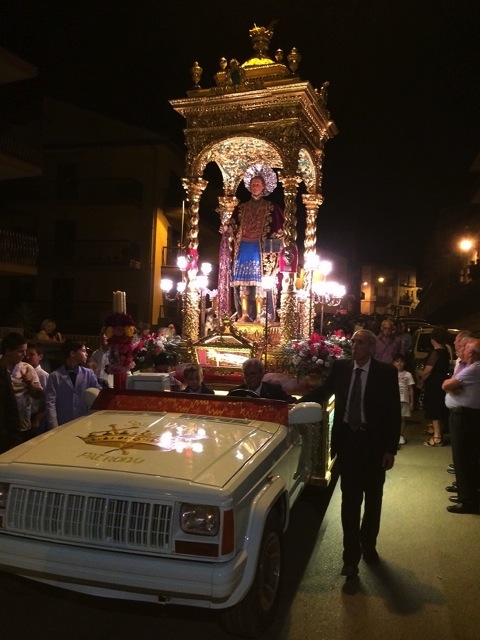 Prima il parroco della Chiesa madre, don Giovanni Nobile, ha benedetto il nuovo carro, un’auto speciale su cui è stato collocato il simulacro. Il corteo ha preso il via dal cuore del centro storico. La statua del Patrono è stata portata in visita nelle chiese di Santa Maria di Gesù, San Giovanni Battista e Santissimo Salvatore.