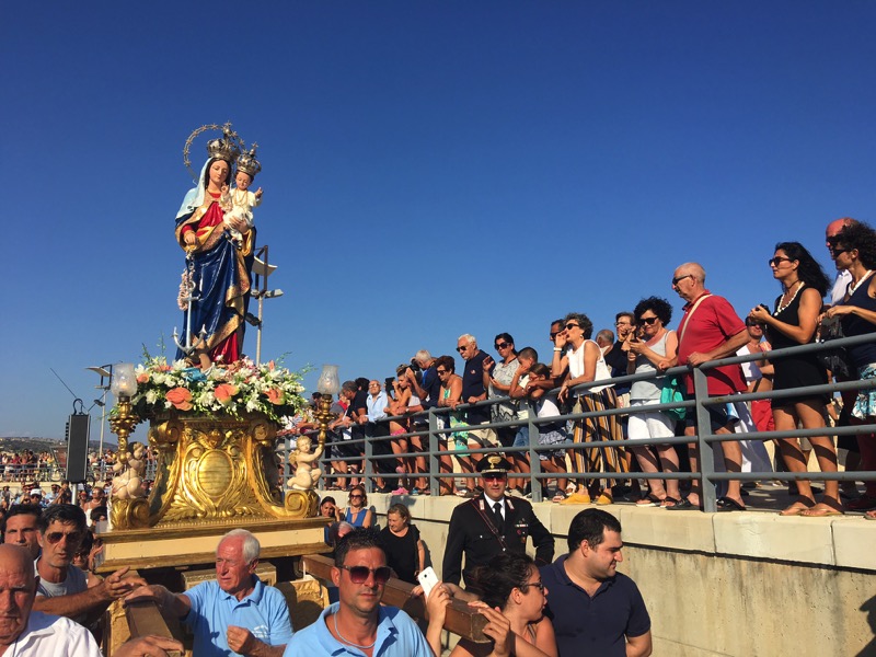 Marina di Ragusa, 16 agosto 2016 – Bella festa in onore della Madonna di Portosalvo, anche quest’anno: migliaia i fedeli che hanno seguito, lungo la riva, il tragitto del simulacro dalla chiesa al porto turistico con il consueto e sempre suggestivo imbarco.