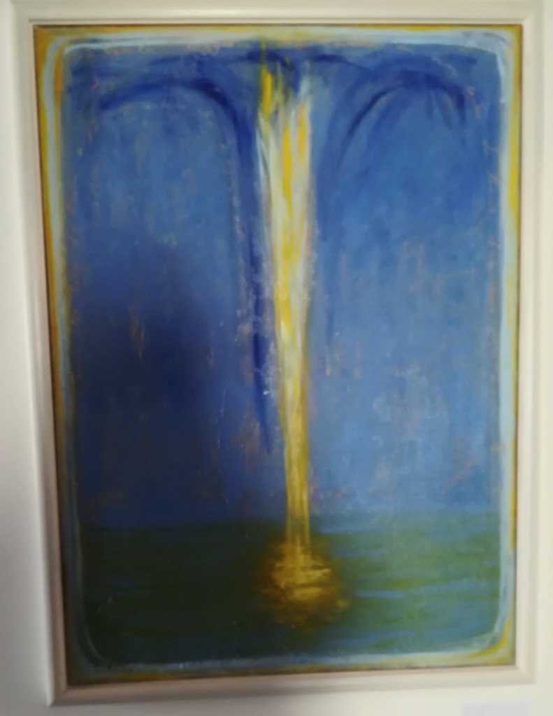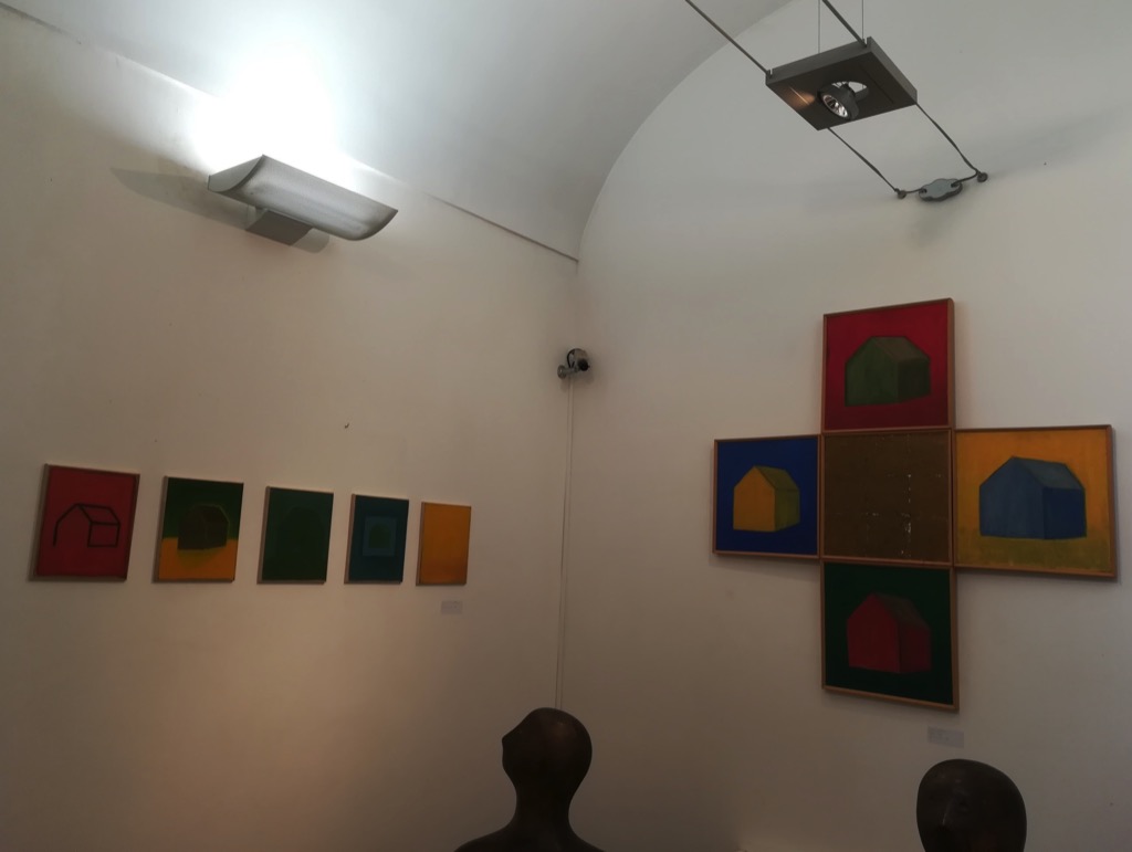 Poi l’antologica conduce il fruitore in un’altra sala in cui è evidente che l’artista “esce fuori” e incomincia a vedere la realtà che lo circonda: il paesaggio urbano, espresso però con il colore, con rappresentazioni di alberi ( opera “DUE” per esempio) in cui si nota l’alternanza della luce. Si attraversano le sale e si incontra un altro tema caro all’artista: il tema dell’armadio in cui si notano le due linee che si incrociano e quindi evidente è la simbologia della croce.