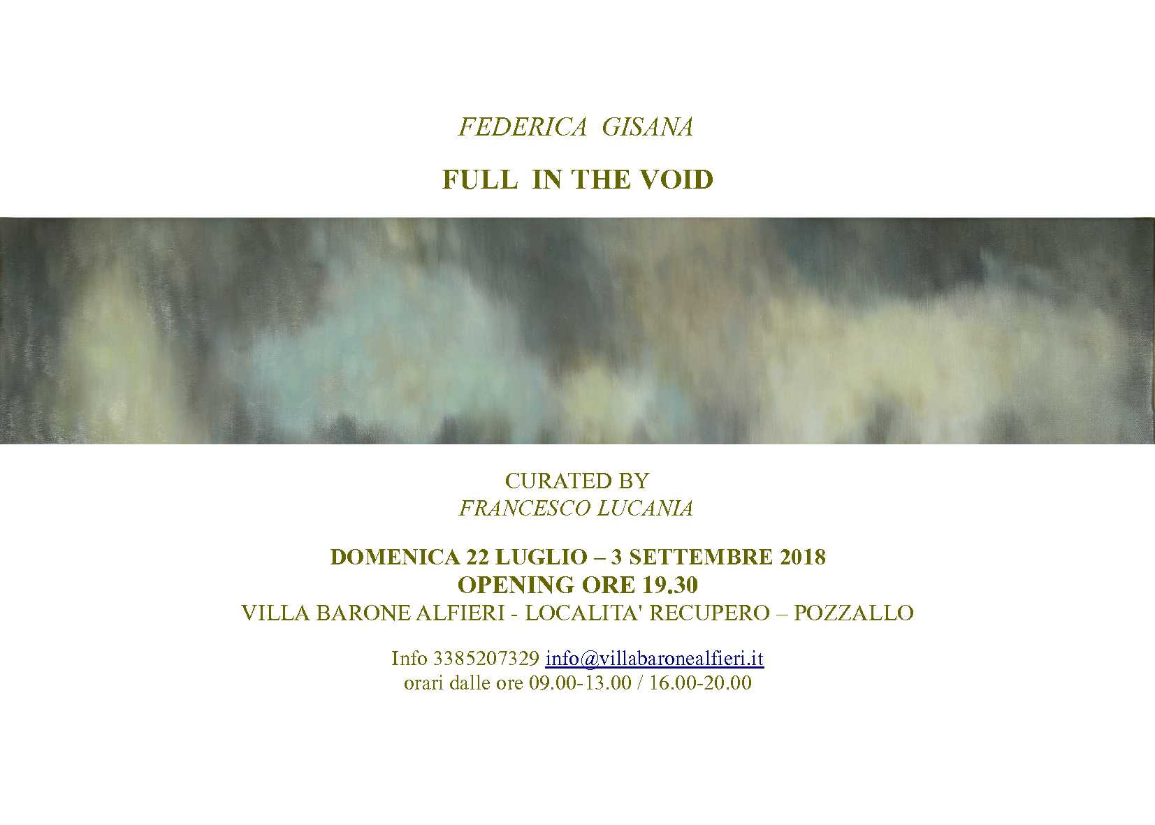 Pienezza del vuoto. Sembra un assioma filosofico. Sicuramente un ossimoro, col velato intento di suscitare curiosità. E’ il titolo double face (“Full in the void / Pienezza del vuoto”) della mostra che l’artista modicana Federica Gisana terrà domenica 22 luglio, alle ore 19.30, presso la Villa Barone Alfieri a Pozzallo. L’esposizione raccoglie una silloge di 40 opere, realizzate negli ultimi anni, in cui l’artista si cala in una sorta di diario di viaggio pittorico la cui architettura è alimentata da appunti visivi ed emotivi, frammenti di ricordi interiori da inseguire, una girandola di visioni da condividere col pubblico. I suoi quadri esprimono una sorta di magismo cromatico che avvolge in un frame attimi dello scorrere della vita, quasi a ricercare l’intima luce onirica dell’artista.