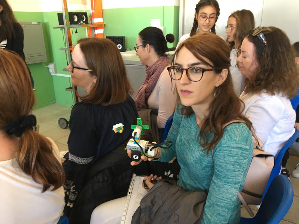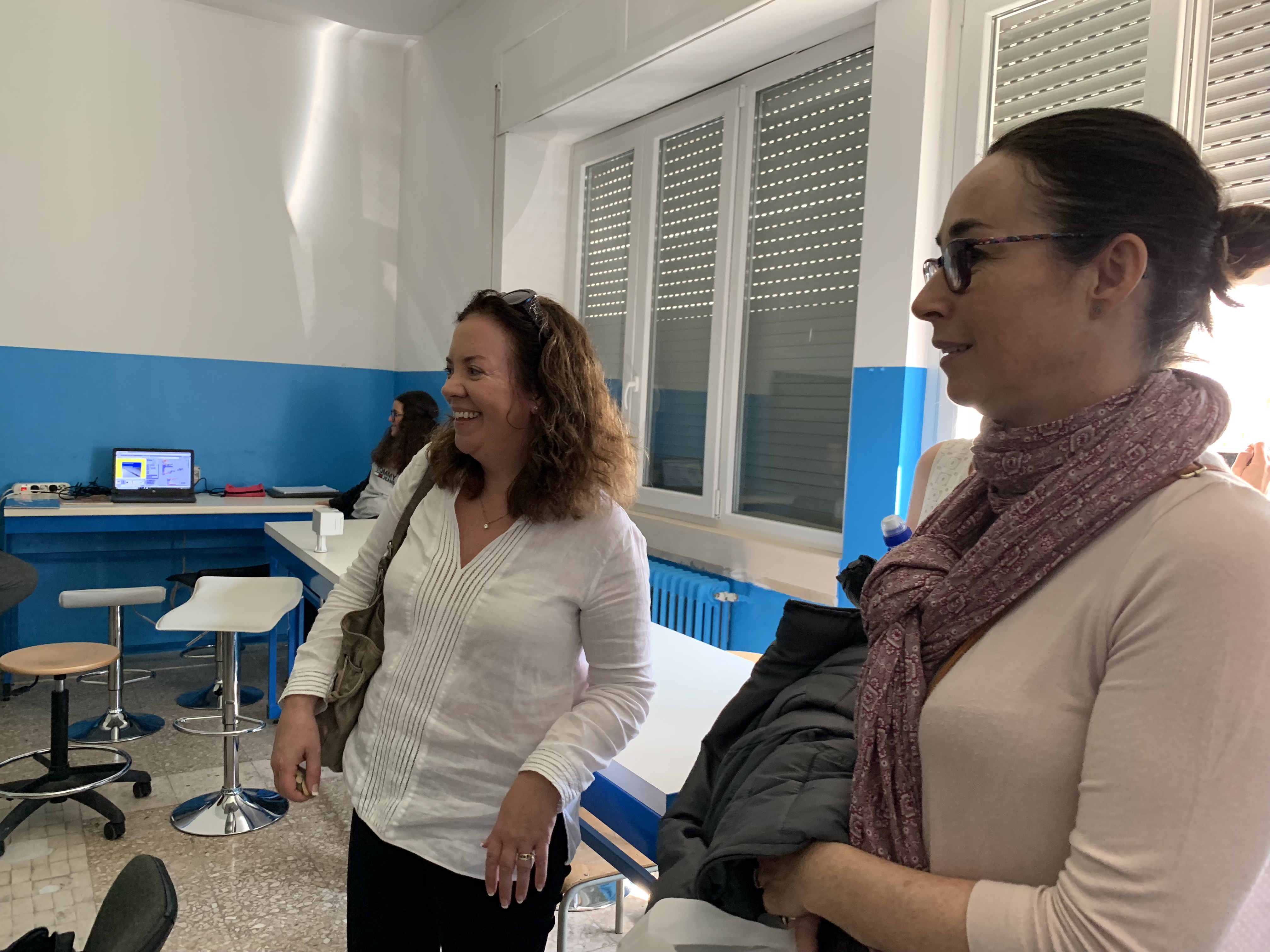 Lunedì 22 ottobre intenso Workshop e laboratori nei locali Necker e Diodoro Siculo (sempre appartenenti all’IC Berlinguer). Anche qui gli alunni e gli insegnanti mostrano i lavori e i progetti, che vanno dalla pigiatura del vino e la produzione di torte al carrubo ai trasporti alla robotica, con una bella dimostrazione, al coding per un progetto musicale e tanto altro. Rita e Marta (Polonia) da una parte e Mateu Simó e Miriam (Valencia) dall’altra sono molto interessati e fotografano tutto per rivedere successivamente e catalogare e inventariare, come ci dicono, per poi approfondire.