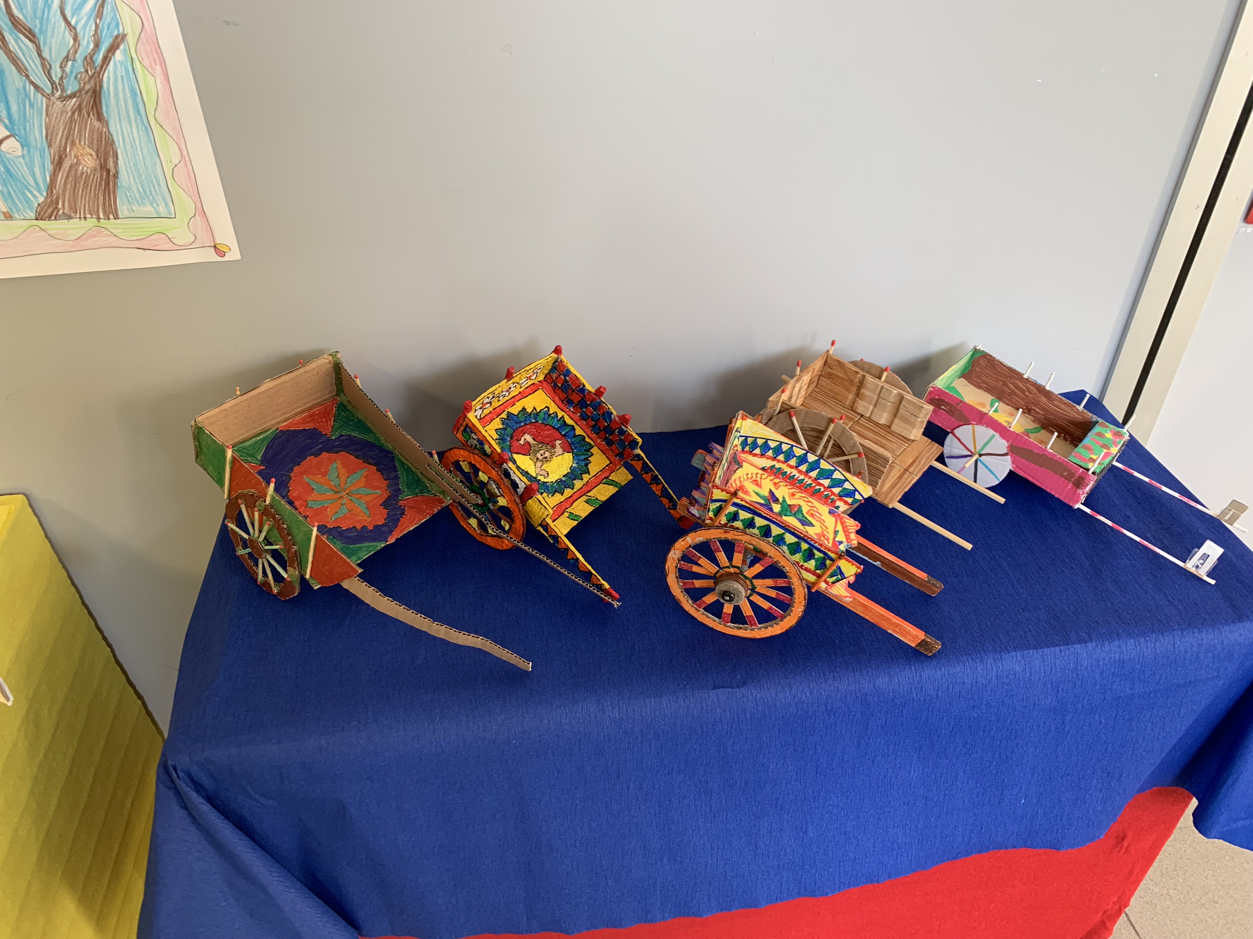 L’accoglienza inizia nel plesso "G. Blangiardo" di Via Berlinguer con l’esposizione di carretti siciliani e auto d’epoca; accoglienza e partecipazione, dunque, con quattro peculiarità che caratterizzano le giornate dedicate al progetto Erasmus Plus che hanno avuto come luogo di incontro, moderna “agorà” didattica, l’Istituto Comprensivo Berlinguer. Sabato 20 ottobre Ragusa ha respirato aria europea come promotrice di uno scambio culturale che, come detto, ha avuto inizio in Irlanda e poi, in primavera quando le insegnanti dell’Istituto sono state ospitate a Mogliano e Petriolo, in territorio maceratese. Carretti siciliani, veri e propri “libri illustrati” della nostra storia e della storia europea (da una parte l’epopea di Carlo Magno e dell’Impero, con Orlando Rinaldo, Angelica e Bradamante, dall’altra la Cavalleria Rusticana con Alfio e Turiddu, Lola e Santuzza, temi tipici illustrati spesso nelle “sponde” laterali dei carretti) come latori di cultura e folklore (la cultura e lo spirito del popolo) e auto (d’epoca, per l’occasione, insieme a vespe e motociclette, anch’esse d’epoca, che rappresentano l’evoluzione dei trasporti locali) e poi anche ricerche che gli alunni hanno svolto, con la collaborazione degli insegnanti, sui trasporti via strada ferrata (classica citazione a Ragusa, quella del famoso “Trenino di Ciccio Pecora”, ora venuto alle cronache con il progetto di metropolitana di superficie). Infine, trasporti del futuro con ricerche sulle “macchine che verranno” e studi sulla robotica, in cui il coding è parte fondamentale. Da notare che un carretto esposto all’interno della scuola, con un cavallo vero, era da ammirare (ed è stato ammirato) proprio per l’eccellente fattura artigianale e artistica e ben figurava come emblema del tema scelto, quello dei trasporti.