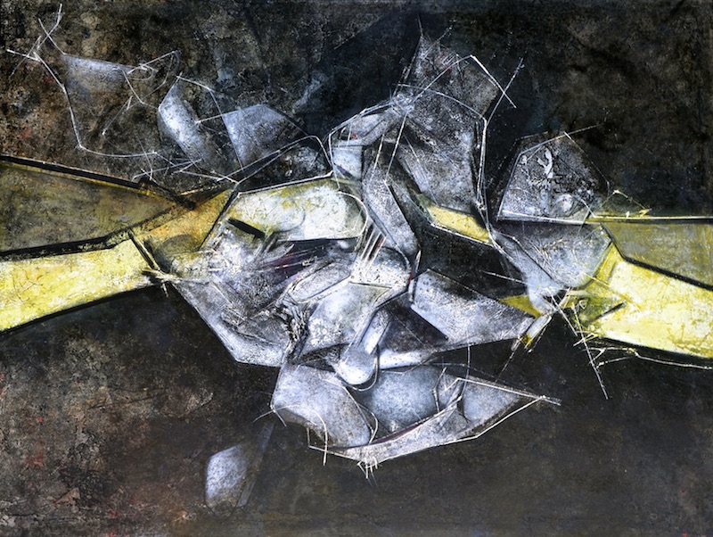Dal ’65 al ’73 nascono numerose opere brumose dalle pennellate formalmente “Espressioniste” per raccontarci, sulla pagina della superficie di una tela, l’osservazione amara e dura delle cose del mondo affrontate però con un procedere ideativo che partendo dalla narrazione pittorica della lacerazione insegue e trova la riparazione. Un perenne caos alla ricerca della propria armonia: di un equilibrio.