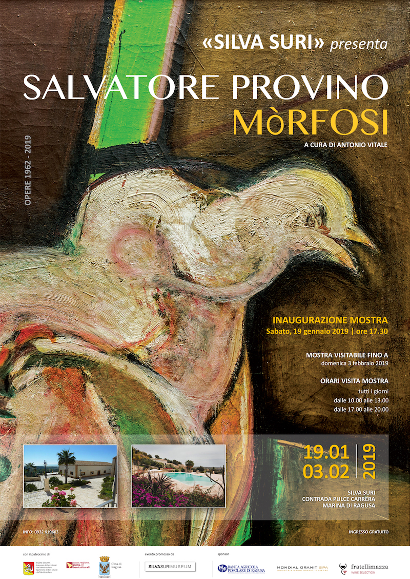 Dal 19 gennaio al 3 febbraio 2019, a Marina di Ragusa (Ragusa), il SilvaSuriMuseum promuove ed ospita la mostra personale “MòRFOSI” di SALVATORE PROVINO a cura di Antonio Vitale.