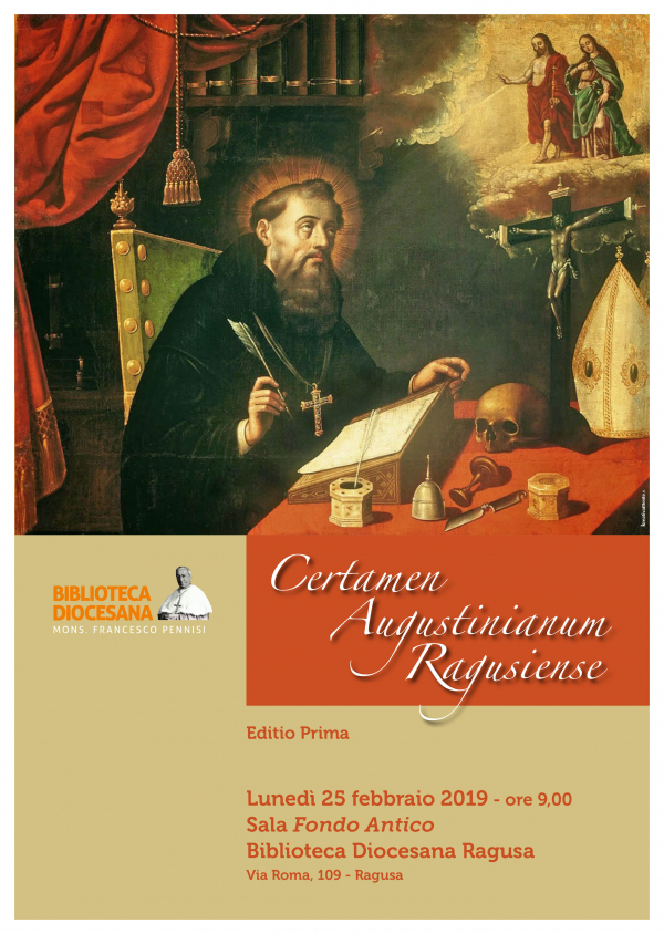 Lunedì 25 il primo Certamen Augustinianum Ragusiense promosso dalla Biblioteca diocesana “Monsignor Francesco Pennisi”. Previsto un brano di Sant’Agostino sull’amicizia