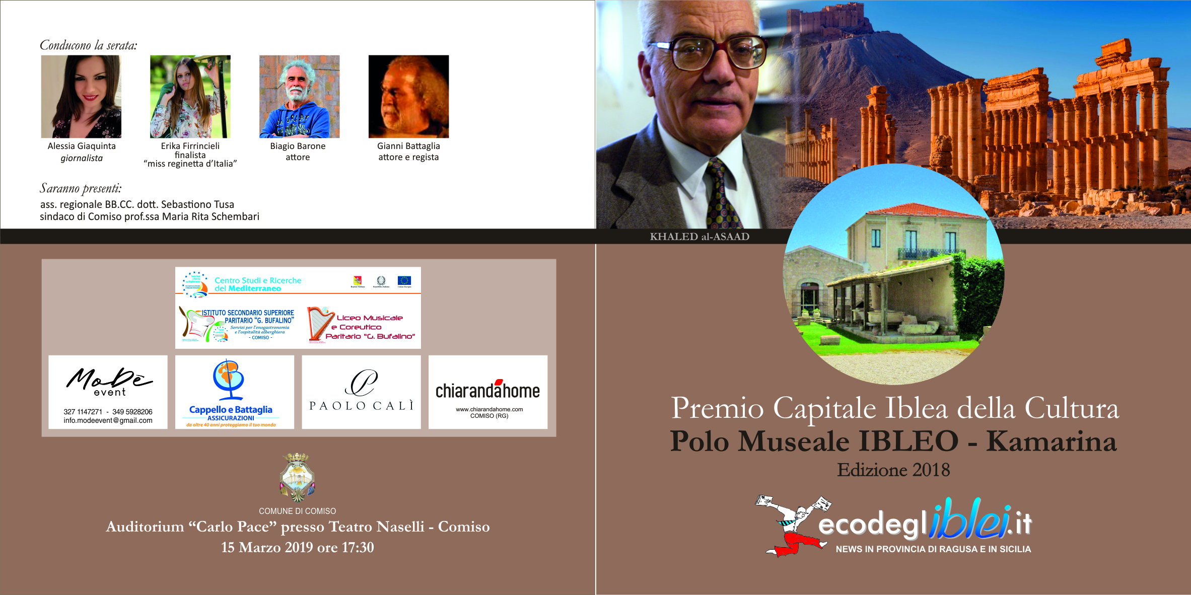 Comiso, 13 marzo 2019 – Giorno 15 marzo a Comiso, presso l'auditorium “ Carlo Pace, si svolgerà la IV edizione di “ Capitale iblea della Cultura “, manifestazione organizzata dal quotidiano online ecodegliblei.it: nel corso degli anni abbiamo premiato il comune di Modica, quindi quello di Scicli, per poi passare a Ragusa.