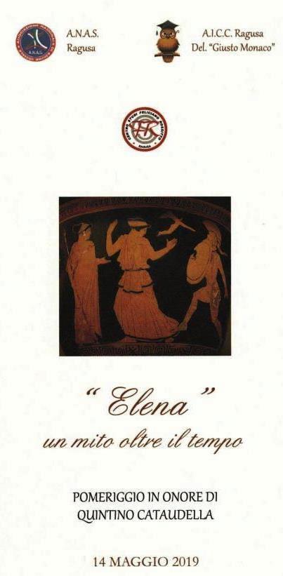 Ragusa, 8 maggio 2019 – Martedì 14 maggio 2018, alle ore 18.15, presso il Centro Studi “Feliciano Rossitto” (Via Ettore Majorana, 5 – Ragusa) si terrà l’incontro sul tema “Elena” un mito oltre il tempo” (pomeriggio in onore dell'illustre grecista Quintino Cataudella).