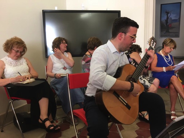 Le poesie sono state intervallate da brani musicali e vocali a cura del Duo Estrella (M° Lino Gatto, alla chitarra, e Ilde Poidomani, voce).