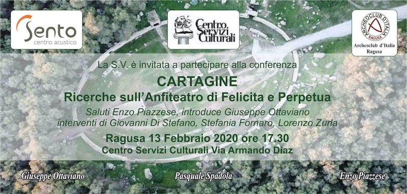 Ragusa, 7 febbraio 2020 – Giovedì 13 febbraio 2020 alle 17.30 a Ragusa, Centro Servizi Culturali (Via Armando Diaz 56), si terrà una conferenza sul tema Cartagine: ricerche sull’Anfiteatro di Felicia e Perpetua.