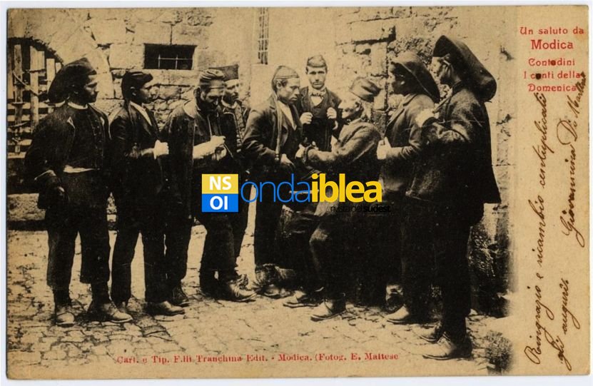 Nacque, così, sotto la sua direzione, la “Fotografia Artistica”, specializzata in ingrandimenti, riproduzioni, vedute e costumi come si legge sul retro del cartoncino posto a supporto di un’antica foto “formato visita” di fine Ottocento. Il suo nome insieme a quello di valenti professionisti dell’arte fotografica quali Emanuele Risino, Giacomo Grita, Placido Napolitano segnerà, dunque, anche la storia della fotografìa a Modica. È grazie a quest’altro suo interesse artistico che oggi, oltre la sua produzione pittorica, sparsa in Italia e all’estero, resta a noi una raccolta d’immagini dell’epoca che ci consente di conoscere luoghi e persone del passato. Immagini, tratte per lo più da antiche cartoline, tutte edite e in gran parte viaggiate agli inizi del Novecento, che ritraggono donne e uomini immortalati nell’atto del proprio lavoro, nei momenti di riposo o di socialità. L’obiettivo ha fissato volti e figure con i loro abiti su scenografie naturali o create ad arte. Nella rigidità delle foto, uomini e donne mature, giovani contadini e contadine, massari e massare, diventano protagonisti. La fotografia si trasforma in questo caso in elemento altamente democratico, perché mette le genti del popolo – spesso per la prima volta in posa per il fotografo – sullo stesso piano di persone dal ceto elevato, cui era in genere destinato l’uso della macchina fotografica. Personaggi che sembrano talvolta far parte di favole antiche e che ritroviamo magistralmente rappresentati e analizzati nelle opere del barone chiaramontano Serafino Amabile Guastella, profondo studioso e interprete della vita popolare nel territorio ibleo.