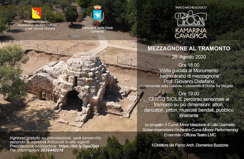 Il 28 agosto 2020 alle 18 si inizia con una visita guidata al monumento “Bagno arabo di Mezzagnone”, a ora del prof. Giovanni Distefano (Università della Calabria e Uni Tor Vergata, Roma).