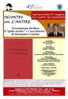 Modica, 17 settembre 2020 — Prenderà il via il prossimo 26 settembre a Modica, nel rispetto delle norme anti covid 19 (mascherina e distanziamento), la XV stagione dei "sabati letterari" del Caffè Quasimodo, distribuiti da settembre a maggio 2021.