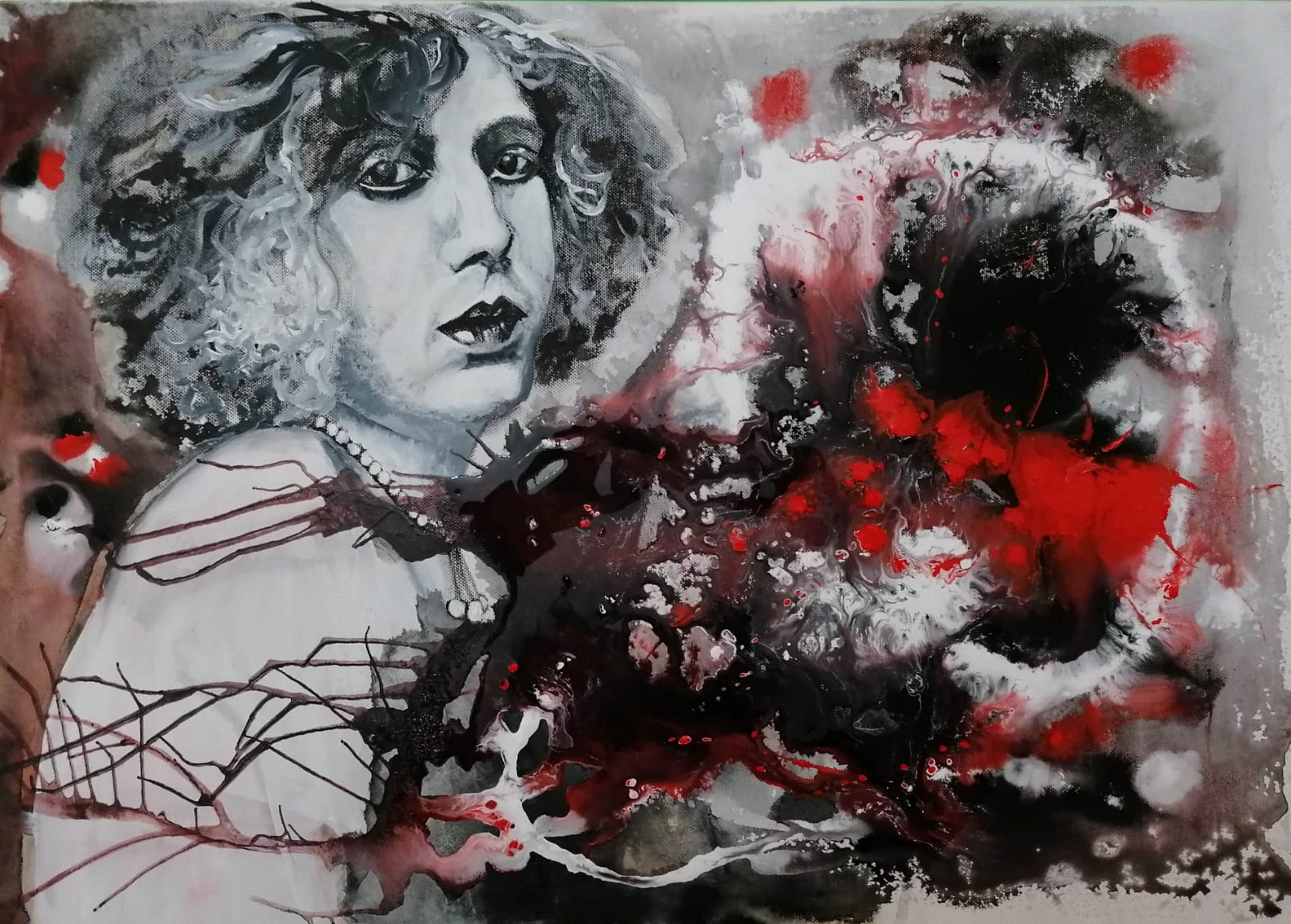 Uno sguardo tenero e, al contempo, ribelle. Uno sguardo che nasconde e che dice tutto. Uno sguardo che ha colpito l’animo pittorico della modicana Margaret Carpenzano che, dopo aver visto più volte il film, ha voluto trasferire le sue sensazioni su tela, creando “Il mio big bang” (tecnica mista su tela, marzo 2021).
