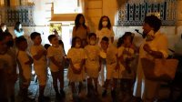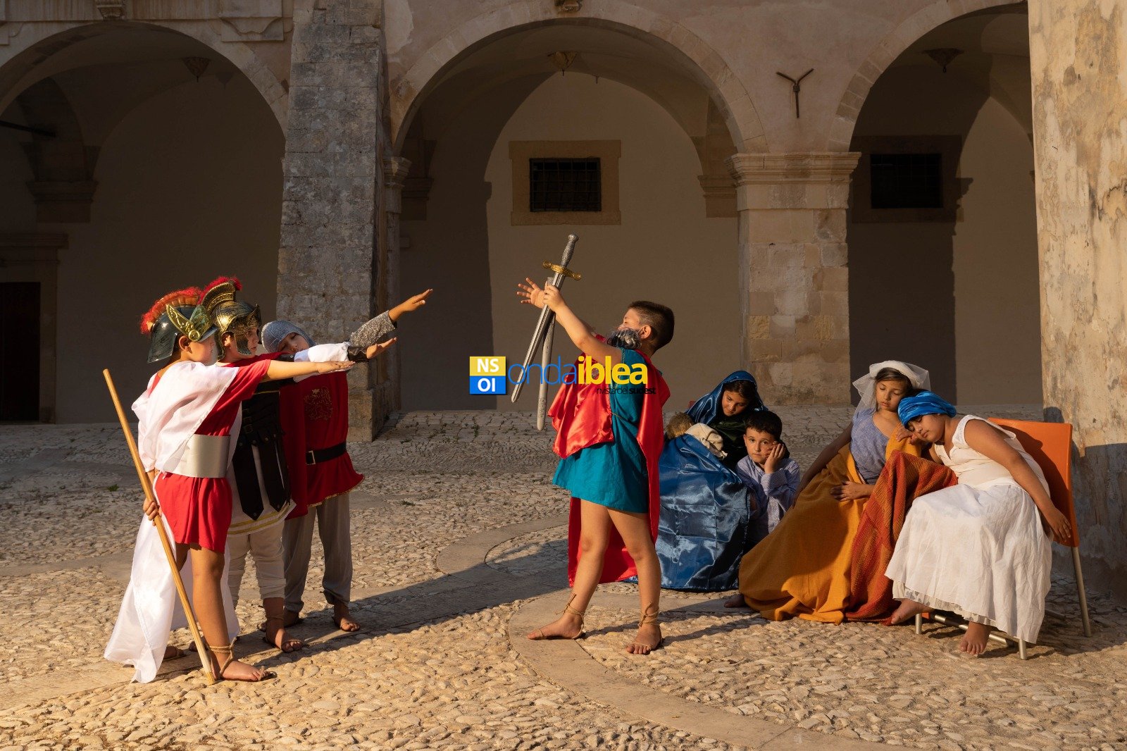 Un elogio giunge da un’artista al microfono, Mary Bellentani, che da quarant’anni svolge questo lavoro e che ha anche un atelier a Milano e che per il momento si trova qui a Scicli, a villeggiare; lei ha espresso belle parole: «mi sono veramente emozionata nel vedere questi bambini così piccoli, ma altrettanto precisi e attenti. Siete stati bravissimi, emozionare me non è facile, mi avete toccato il cuore. Vi devo proprio ringraziare per questa bellissima esperienza e sono soprattutto orgogliosa che in un paesino così piccolo della Sicilia come Scicli e Donnalucata si facciano delle cose così importanti. Vi auguro di continuare perché sono delle ricerche veramente importanti avete imparato forme, colori, storia, gestualità e mi avete emozionato e non è semplice. Un grazie particolare alle insegnanti».