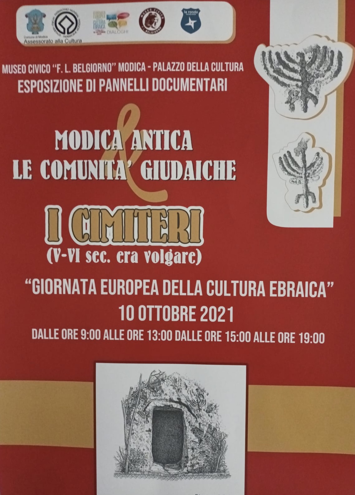 Modica, 21 settembre 2020 — Giornata europea della cultura ebraica: il prossimo 10 ottobre sarà celebrata a Modica presso il Museo Civico "Franco Libero Belgiorno" con l’esposizione Modica Antica e le comunità ebraiche. I cimiteri (V-VI sec. dell’era volgare).
