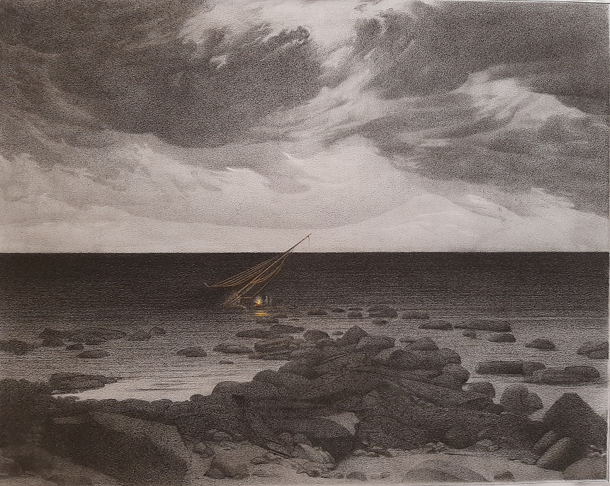6 GIUSEPPE COLOMBO, La barca dell'amore si è spezzata contro il quotidiano, a Guccione, Friedrich e Majakovskij, pastello (2021)