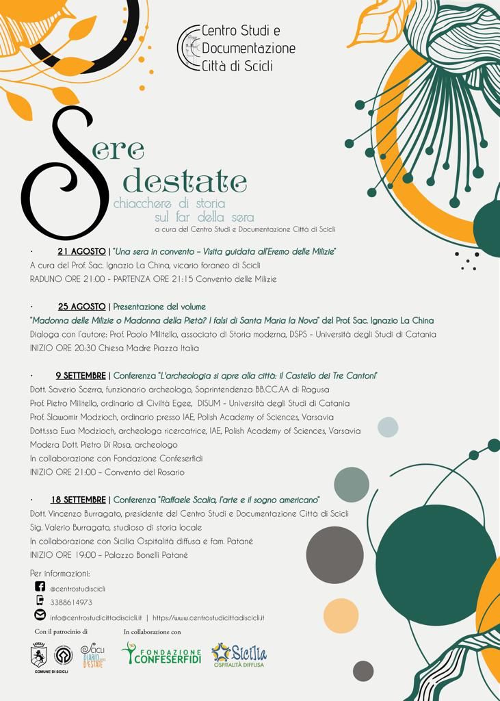 Scicli, 19 agosto 2022 — Cominciano domenica 21 agosto le SeredEstate proposte dal Centro Studi e Documentazione Città di Scicli.