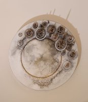 Una superfice che parte dall'essere materica ma che con gli anni si è accentuata anche attraverso l'utilizzo di oggetti "dialoganti" poiché tutti ciò che viene definito nella quotidianità ha un incredibile potere dialogante. Di questo l'artista è fermamente convinta e in queste sue opere, collezione dal 2020 ad oggi, questo dialogo si evolve. E si evolve anche con i miglioramenti di silenzio, altrettanto importanti per l'artista poiché dal momento in cui realizza la sua opera pittorica si sente felice.