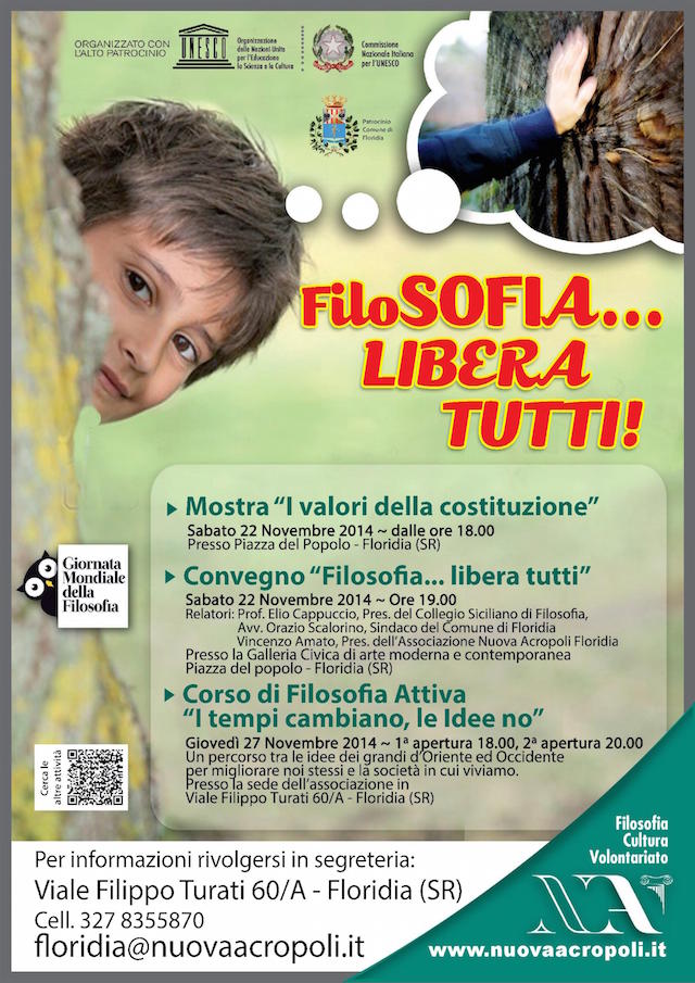 L’Associazione Culturale Nuova Acropoli Floridia, celebrerà la Giornata Mondiale della Filosofia organizzando la manifestazione “La FiloSOFIA… Libera tutti!”