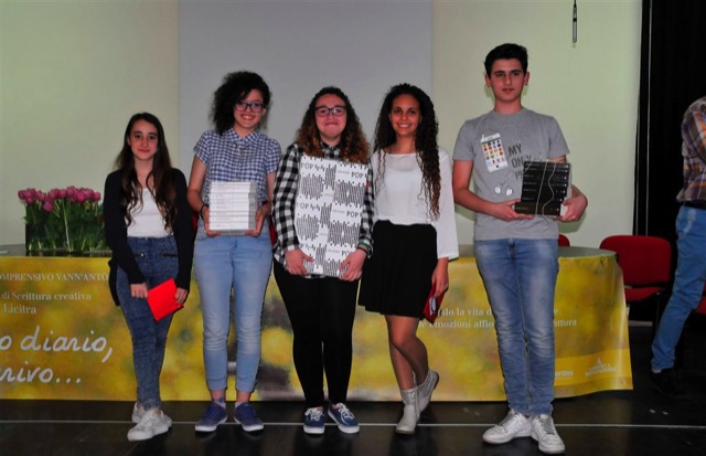 La cerimonia di premiazione si è tenuta ieri pomeriggio all’auditorium dell’istituto Vann’Antò di Ragusa. Alla Licitra, che ha presentato un elaborato che è uno spaccato dell’agitato mondo dell’adolescenza, è andato in dono un computer. Con un elaborato dedicato al rapporto con la musica, si è classificata al secondo posto Valentina Allù dell’istituto comprensivo Crispi mentre al terzo posto, con un elaborato su una ragazza che in prima persona vive la seconda Guerra Mondiale, si è classificata Carla Migliorisi ancora dell’istituto Vann’Antò.