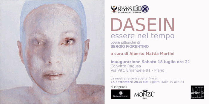 Un percorso articolato in quaranta opere di grandi dimensioni che rappresentano la grazia e l'armonia dei "Tuffatori", indagano la magia nascosta nei "Volti" e mostrano l'unicità enigmatica dei "Gemelli". A Noto con "Dasein", termine preso in prestito dalla filosofia tedesca (Heidegger), Sergio Fiorentino racconta il suo "esserci" nel senso spaziale e temporale, il suo tentativo in divenire di analizzare il presente