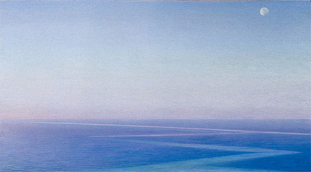 I suoi paesaggi, come ricerca di sé e del senso della vita, emergono sulla tela con linee di colore soffuse e infinite, il mare e il cielo come metafora dell'armonia dell'universo stupiscono per la loro luce, per le pennellate e i segni sempre più evanescenti, per i colori azzurri, verdi, gialli contrapposti talvolta al nero, al buio dell’anima, alle pulsioni non espresse, alla finitezza dell’Uomo.