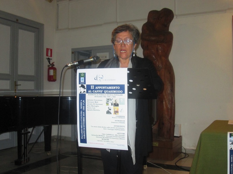“Il dialetto siciliano non è nostalgia per il passato ma, come del resto qualsiasi patrimonio monumentale che viene salvaguardato , un bene da tutelare perché in esso è racchiusa la storia di un popolo”: con queste parole il Presidente del Caffè Quasimodo di Modica, Domenico Pisana, ha aperto la “Rassegna di poesia e musica popolare siciliana” tra ‘500 e ‘900, che si è svolta, con il coordinamento di Franca Cavallo, sabato scorso al Palazzo della Cultura nel quadro delle celebrazioni per il suo decennale.