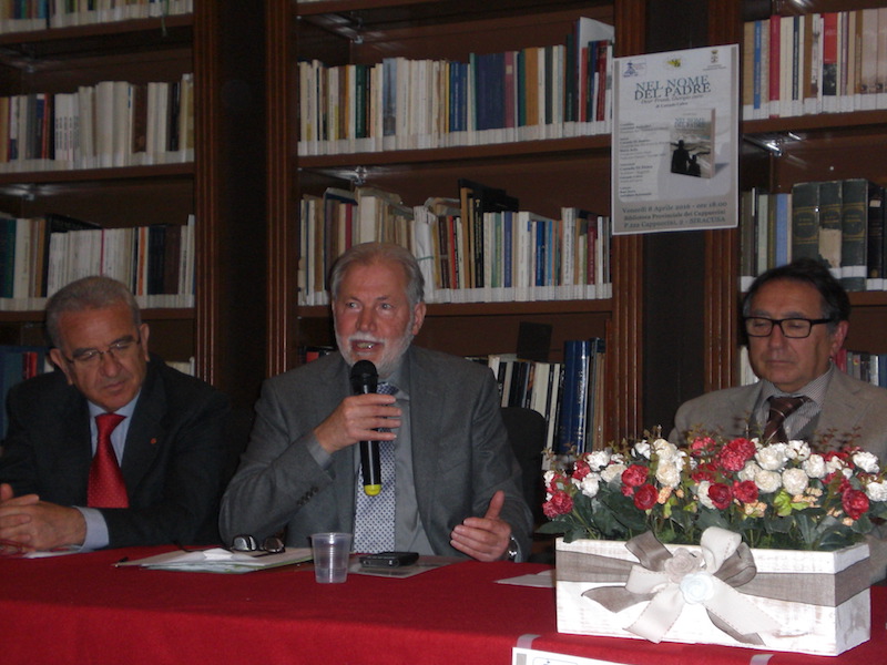 Siracusa, 21 aprile 2016 – Nella splendida cornice della Biblioteca dei Cappuccini in Siracusa venerdì 8 aprile si è riunito il pubblico delle grandi occasioni per partecipare alla presentazione del romanzo dello scrittore rosolinese Corrado Calvo, autore de “Nel nome del padre. Dear Frank, Giorgio caro”, opera pluripremiata e fra l’altro inserita fra i finalisti del prestigioso Premio Pannunzio di Torino, da cui sono passati i maggiori scrittori del Novecento. L’incontro è stato promosso da ben tre associazioni: L’Associazione Pachinesi nel mondo, l’Associazione Rosolinesi in Siracusa e il Centro Studi “Turiddu Bella”.