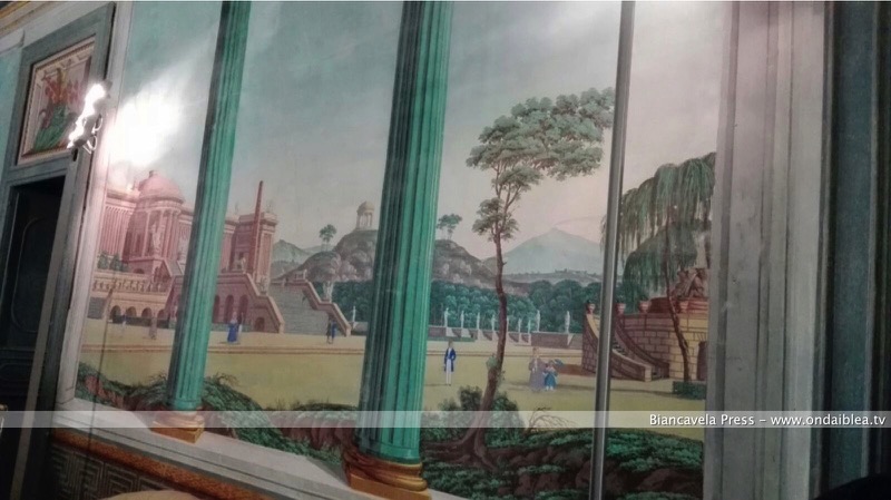 Poi la “Sala della musica”, un salone particolare per le pareti “trompe-l’oeil”, raffiguranti paesaggi fantastici e soggetti reali, come il Teatro Massimo e l’Orto Botanico di Palermo e lo sfondo con il mitologico Mongibello. Questa sala ospita un abito appartenuto a un grande personaggio del mondo della musica: Vincenzo Bellini. L’abbigliamento è composto da un gilet giallo a righe nere, pantaloni neri, giacca beige con rifiniture in merletto. Il merletto fa da pendant al bavero. A completare il tutto, alcuni spartiti, che rendono viva e presente l’antica figura del musicista.