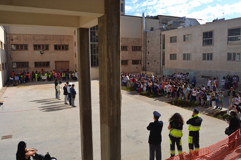 Ragusa, 4 giugno 2016 – Di buon mattino tutor e bambini delle linee pedibus attive quest'anno a Ragusa si sono dati appuntamento al capolinea della linea 'arancione', vale a dire all'angolo tra il corso Italia e la centralissima via Roma. E da qui la coloratissima carovana dei camminatori ha attraversato il centro storico di Ragusa per dirigersi verso il Cortile della scuola Cesare Battisti, dove era attesa da studenti e genitori del plesso scolastico. E, con la magistrale conduzione dell'attore Salvo Giorgio, è subito iniziata la festa con i graditissimi saluti iniziali da parte del Comitato Pedibus Ragusa, delle Autorità e degli ospiti. Dopo i saluti del Dirigente Scolastico dei plessi Cesare Battisti e Paolo Vetri, prof.ssa Beatrice Lauretta, è stata la volta della prof.ssa Daniela Piccitto, dirigente scolastico della scuola Palazzello e presidente del Comitato Pedibus Ragusa, e del dr.Ernesto Turlà, tecnico del Pedibus; si sono quindi succeduti al microfono i rappresentanti di Questura (comm.capo Lorenzo Cariola), Polizia Municipale (vice comandante Umberto Ravallese), Comune (ass.p.i. Gianluca Leggio) e Prefettura (dr Salvatore G.Ciarcià).