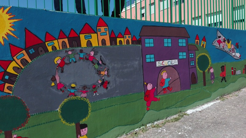 Il cortile si è riempito di colori sia per i murales che per la presenza di tutti gli alunni della scuola “Palazzello” che con canti e poesie hanno allietato la giornata. Tra di loro un piccolo ma già grande poeta, Saverio Scrofani, già autore di un libro di poesie.