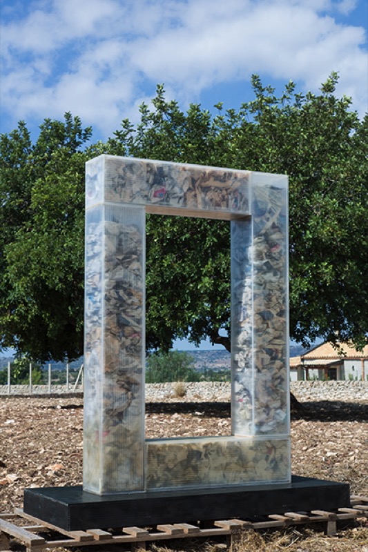Trentadue le opere esposte a palazzo Spadaro, mentre quattro sculture sono visibili a Palazzo di città: nei corridoi del primo piano due bassorilievi in cui sono raffigurate delle carrube, una scultura con l'ultima stazione della Via Crucis, mentre, all'ingresso del Municipio, una Grande finestra dal titolo “L'opacità della carta stampata”.