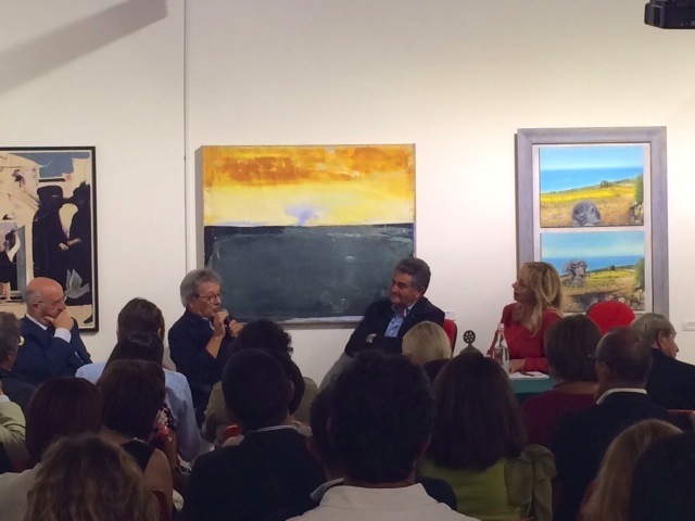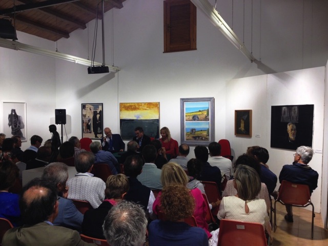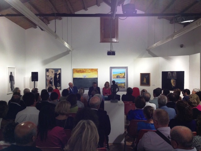 La parola è quindi spettata ad Elisa Mandarà che ha tenuto una conferenza centrata su ciascuna delle opere, della quale il critico ha offerto una lettura, riconducendo l’analisi ai tratti stilistici che contrassegnano la cifra di ogni artista. La curatrice si è soffermata sul valore ideale della partecipazione di ogni maestro ad “Arte per Kamarina”, “un’esposizione che coinvolge artisti i quali, ve ne era certezza, non avrebbero consegnato la traduzione d’una classicità di maniera, ma una propria intima interpretazione, riverberata nella pelle suadente dell’opera d’arte”, ha spiegato la Mandarà, aggiungendo che il contributo degli artisti è stato “un dono, che, medium alto la bellezza, arresta l’ineluttabile fuggevolezza del tempo, la violenza dei suoi segni sulla terra e sulla pietra civile, i ruderi nobili del tempio di Minerva, i resti della città, dell’antico porto canale che correva lungo l’Ippari. Un lavoro corale consistente primariamente nell’assoluto immanente d’una saga visiva di suggestioni: la forza del segno, il sentimento del colore, il riquadro di realtà reinventato in situazioni compositive originali, scorci brucianti di vero assieme a impasti cromatici astrattizzanti, permeati da uno spirito d’affabulazione declinato lungo quattordici opere, in quattordici specifici di cifra, confluenti verso un’arte che valica i concetti limitati di spazio e tempo, per farsi eternamente contemporanea e universale”.