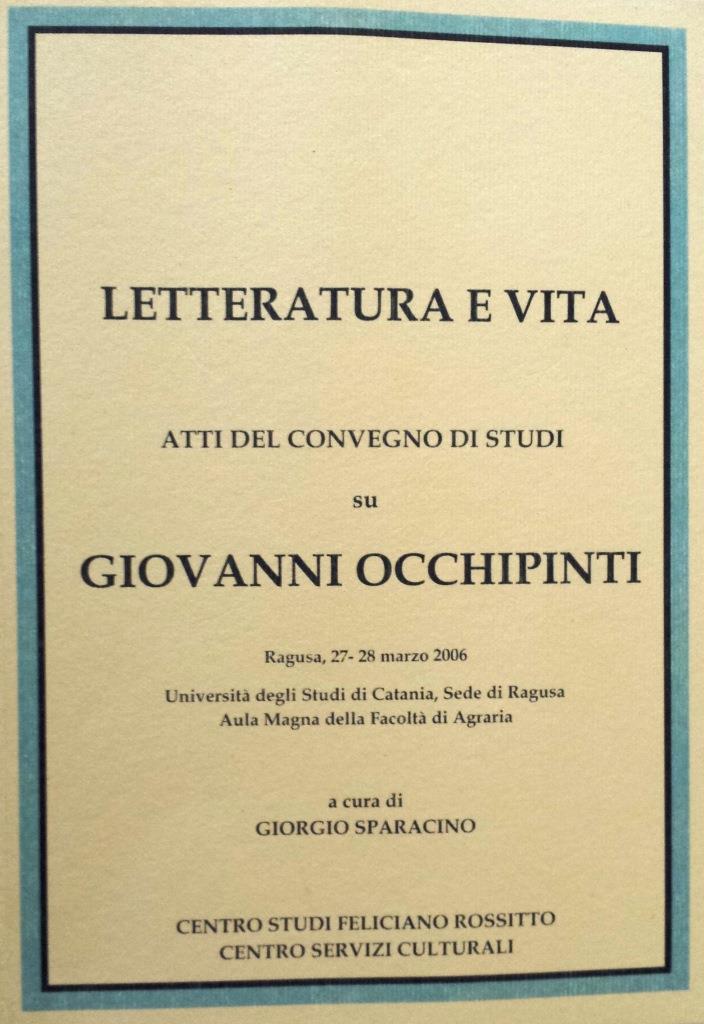 Ragusa, 14 giugno 2017 – Martedì 20 giugno 2017 alle ore 18, nella sala del Centro Studi Feliciano Rossitto (Via Ettore Majorana, 5 – Ragusa) il Prof. Don Carmelo Mezzasalma presenta gli Atti del Convegno di Studi su Giovanni Occhipinti: Letteratura e Vita.