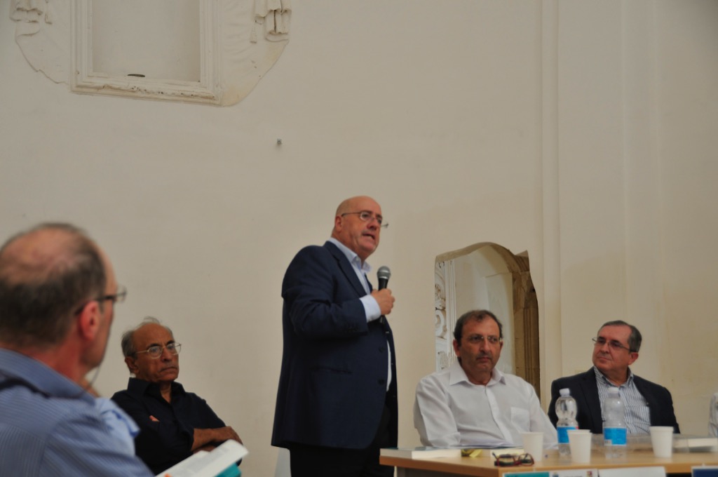 Di Stefano, che in più volumi e ricerche si è occupato ampiamente di Scicli, ha sapientemente coordinato gli interventi e, dal canto suo (dopo l’inziale introduzione del prof. Enzo Giannone, sindaco della città di Scicli), ha presentato gli spunti principali del volume che si pone «una svolta tendente al riordino della storiografia su Scicli – ha detto –, come un punto di partenza per riscoprire la storia medievale della città e non a caso il luogo scelto per la presentazione, il Convento della Croce, è stato scelto come simbolo». «Questo volume, presentato qui al convento della Croce nell’ambito delle Giornate Europee del Patrimonio – ha continuato Di Stefano – ha un valore aggiunto in quanto rappresenta uno sforzo notevole che vuole imporre con forza lo studio e la rilettura della storia di Scicli… Il lavoro degli autori rimette ordine ad una storiografia di Scicli in gran parte legata al Carioti, una storiografia ora finalmente riordinata della Scicli medievale». Di Stefano ha poi evidenziato gli approfondimenti del volume, da parte degli studiosi che hanno collaborato con gli autori nel volume. Autori e studiosi che hanno cercato di dare nuove chiavi di lettura a problemi importanti nella storia di Scicli: il problema dell’abitato (dal colle al piano, ad es.) e il problema dell’incastellamento, ma anche il problema della presenza araba, come accennato.