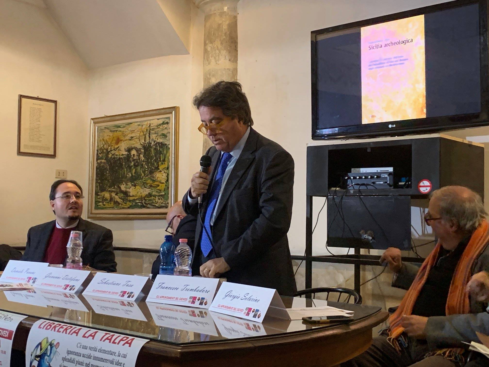 Questi i contenuti dell’opera “Sicilia archeologica” (Edizioni di Storia e Studi Sociali) presentata dall’autore, Sebastiano Tusa, ieri pomeriggio, nei locali della Società operaia di mutuo soccorso, in occasione de “Gli appuntamenti del giovedì”, promossi a Modica per celebrare i 25 anni di attività della libreria La Talpa, rappresentata da Francesco Trombadore, in collaborazione con l’enoteca cioccolateria “Sotto San Pietro”, c’erano Giorgio Solarino e Daniele Pavone, e con il patrocinio del Comune.