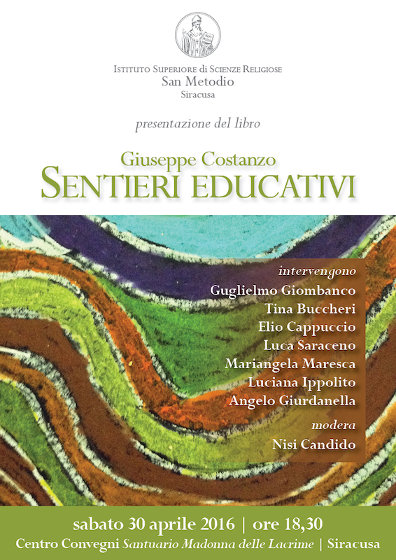 Domani, sabato 30 aprile alle ore 18.30, al centro convegni del Santuario della Madonna delle Lacrime di Siracusa, sarà presentato il libro "Sentieri educativi" di mons. Costanzo.